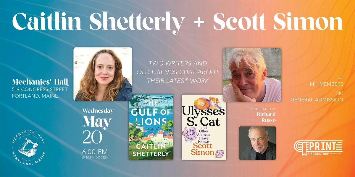 Caitlin Shetterly’s latest novel The Gulf of Lions, is set in France and explores motherhood, cancer, daughters, love, and the ways the stories we tell become the fabric of our lives. She’ll be joined by NPR Weekend Edition Saturday host Scott Simon, whose forthcoming book, Ulysses S. Cat and Other Animals I Have Known, is a charming and poignant collection of vignettes about the animals who have shaped his life and the deep, often surprising bonds between humans and animals.