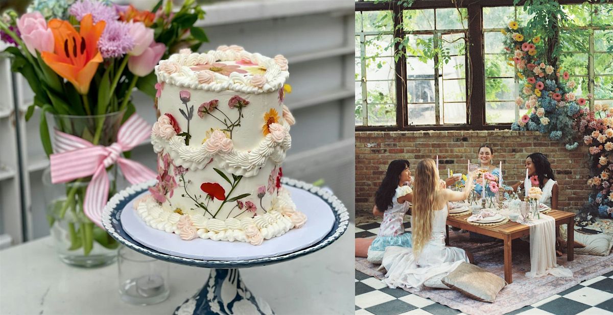 You're invited to join Cake Classes TX at Mira Mira Venue for a charming tea party and cake decorating class, where we'll be decorating the cutest mini heart cakes with pressed florals. Our tea party is hosted by The Posh Picnic, so get ready for a fun morning with plenty of pics!