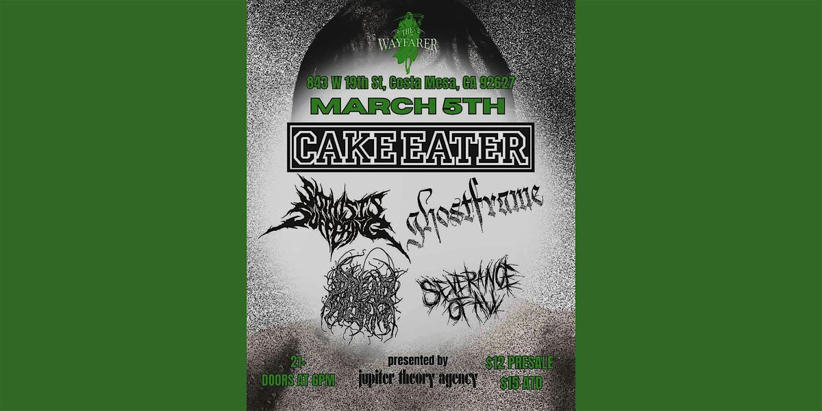 Cake Eater, So This Is Suffering, Ghostframe, Dreadworm and Severance Of All on Thursday, March 5 at The Wayfarer in Costa Mesa, CA!