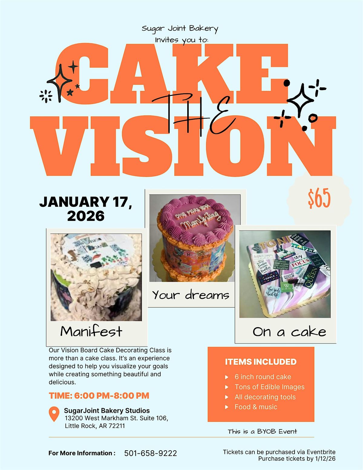 Manifest your dreams one slice at a time! Join us for an inspiring and creative cake decorating experience where vision boards meet buttercream. You’ll decorate your own cake while reflecting on your goals, dreams, and intentions for the year ahead.