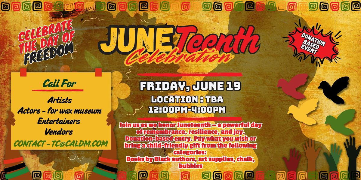 Come join us for our inaugural Caledonia Juneteenth Celebration! We'll have entertainment, food & drinks, a wax museum and fun activities for the whole family. It's a great way to honor and celebrate African American culture and history. Don't miss out on this special event that brings the community together. Mark your calendars and spread the word!