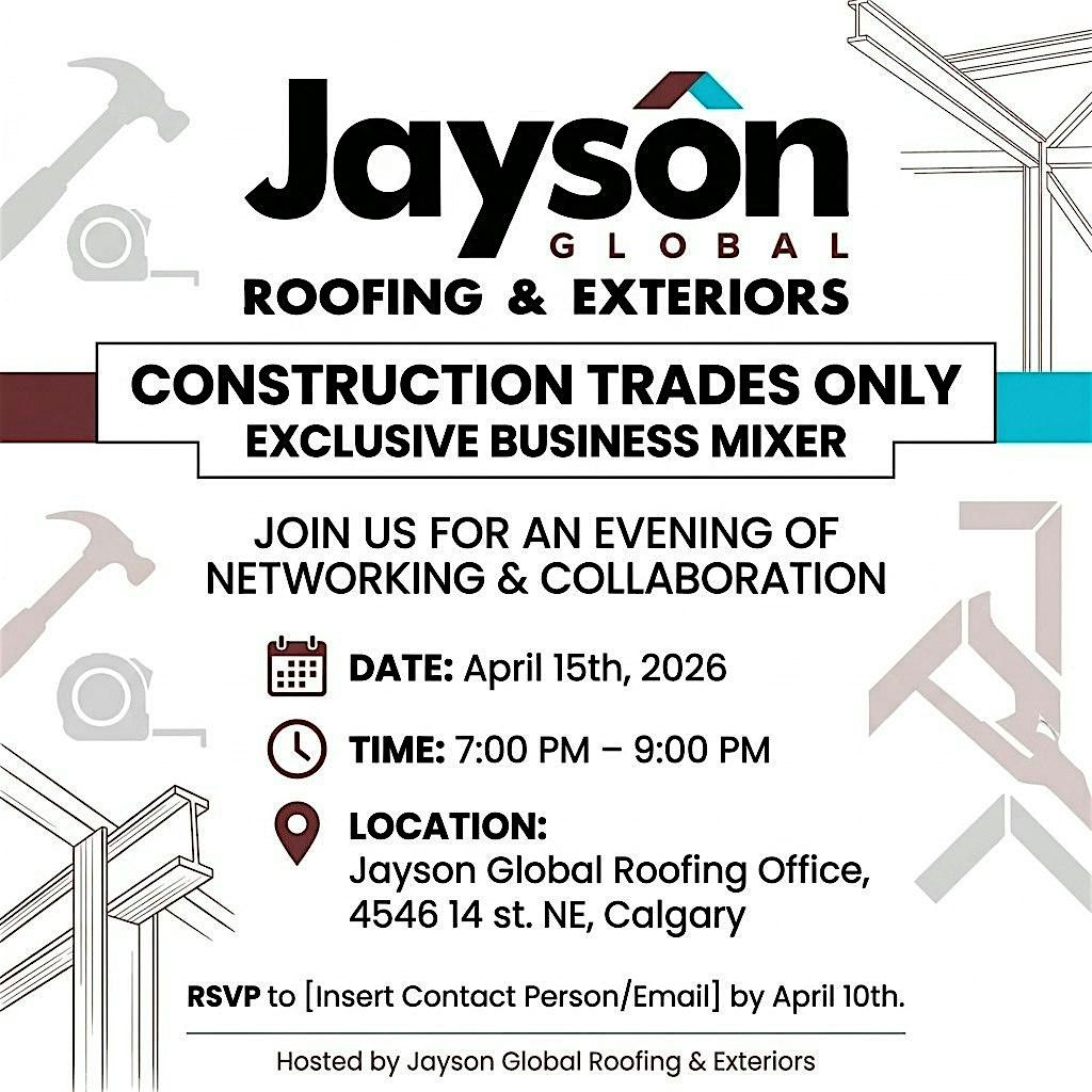 Looking to expand your network without the pressure of a sales floor? Join us at the Jayson Global Roofing office for a Construction Trades Mixer—an event built by the trades, for the trades.