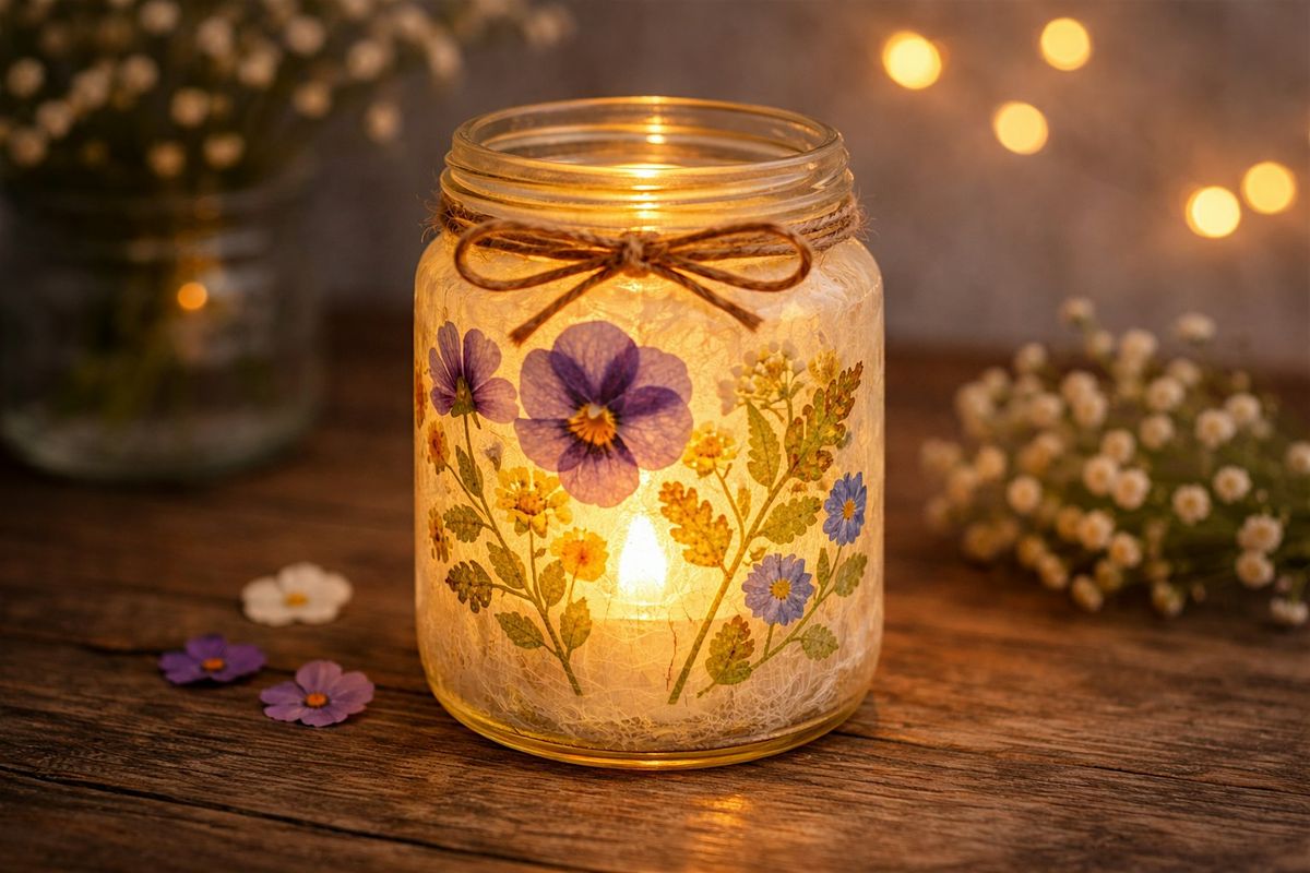In this Craft & Connect workshop, you'll create a beautiful glowing lantern using pressed flowers, glass jars, and soft candlelight.