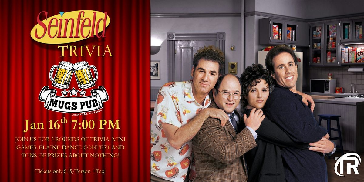 Tremendous Trivia is bringing you a night about nothing—and somehow it’s going to be everything! Think you’re the Master of Your Domain when it comes to SEINFELD TRIVIA? Gather your crew of up to 8 (no close talkers, please) and get ready to prove you’re real, and you’re spectacular!
