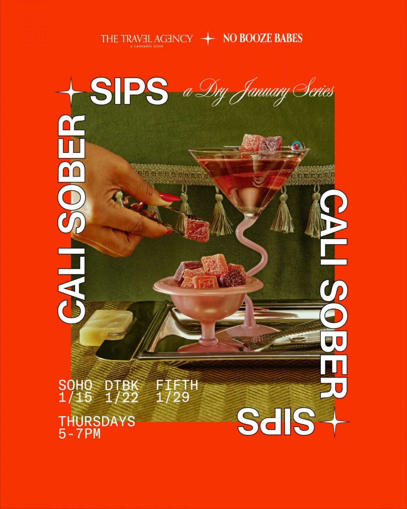 Hosted at select The Travel Agency locations across New York City, Cali Sober Sips invites guests to experience what “Cali sober” can look like through thoughtful non-alcoholic drinks, low-dose options, and relaxed, meaningful connection. In partnership with No Booze Babes, the series centers on curiosity, education, and community, offering a more grounded way to start the new year.