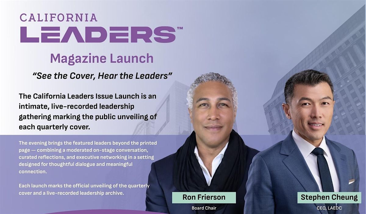 Each launch formally introduces the new issue and preserves the conversation as part of the California Leaders leadership archive.