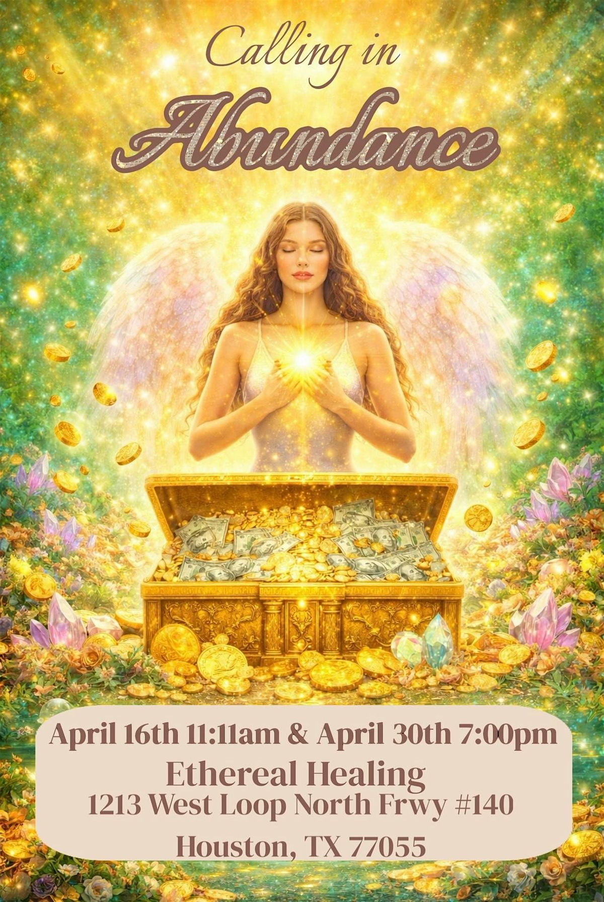 Come to clear, receive, and remember your divine birth right to receive abundance.