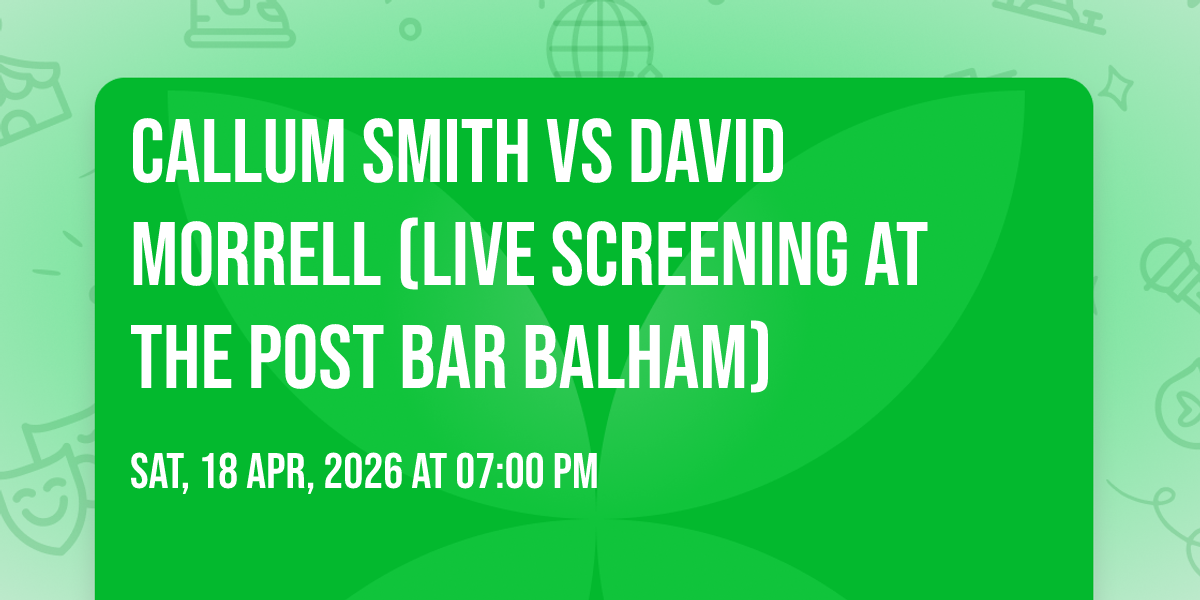 Watch Callum Smith vs David Morrell (Live Screening At The Post Bar Balham) live at The Post Balham. Showing on DAZN at 19:00 on 18/04/2026. Join us at 92A Balham High Rd, London SW12 9AG for a great live sports atmosphere, big screens, food and drinks.