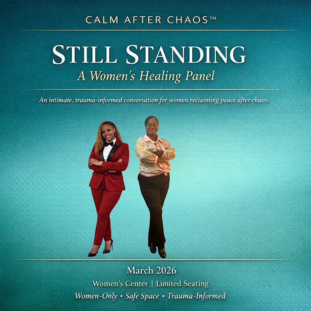 Calm After Chaos™: Still Standing — A Women’s Healing Panel is an intimate, trauma-informed gathering created to hold space for women who are reclaiming peace, clarity, and strength after life’s challenges.