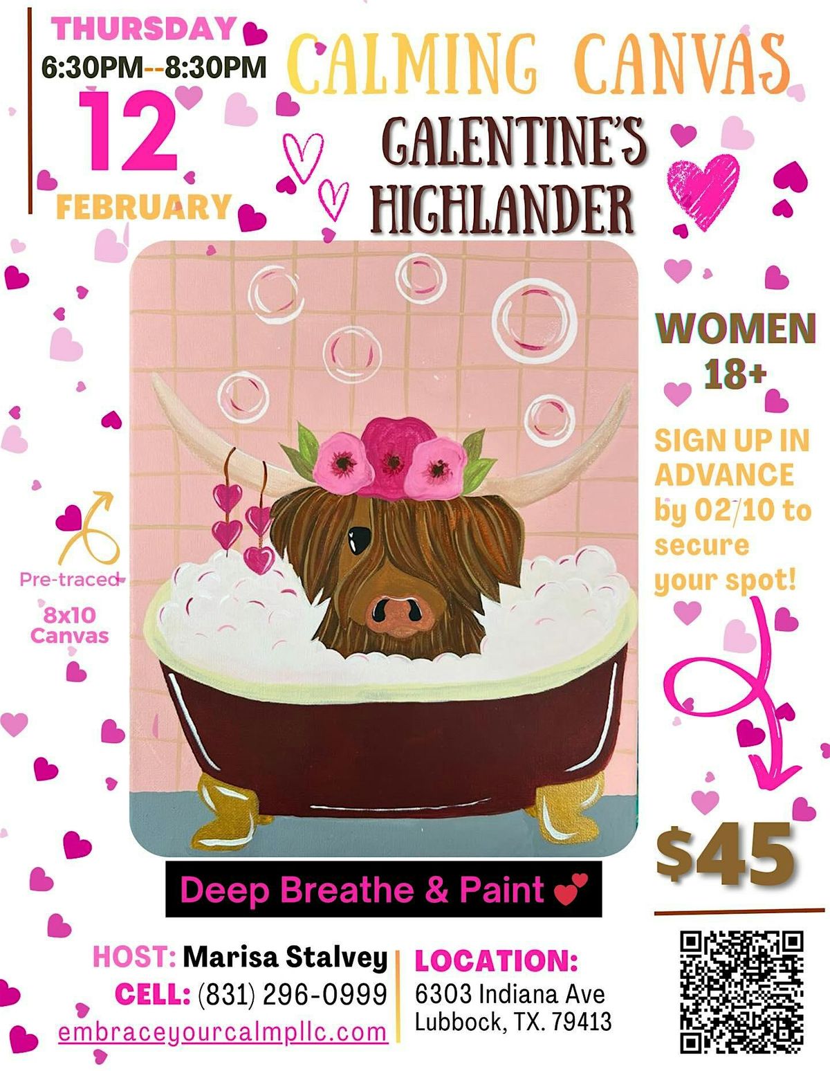 Join us for a cozy, empowering Galentine's celebration at Calming Canvas! Ladies (18+ only), gather your besties or come solo for a relaxing, alcohol-free evening of deep breathing, guided meditation, and mindful painting.