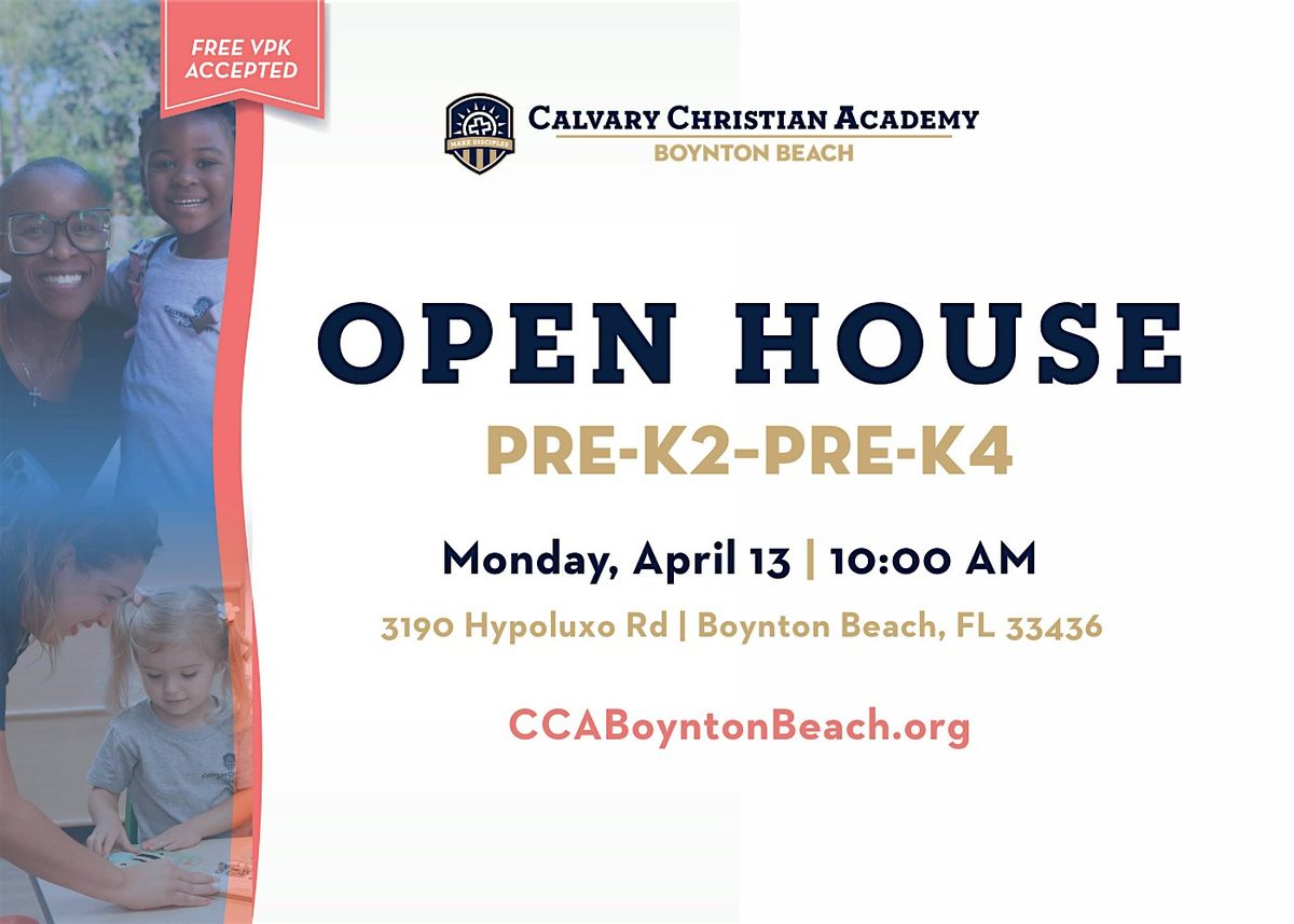 Calvary Christian Academy Boynton Beach will host an Open House event on Monday, April 13, 2026, at 10 AM to promote enrollment for the 2026/2027 school year. Guests will have the opportunity to ...