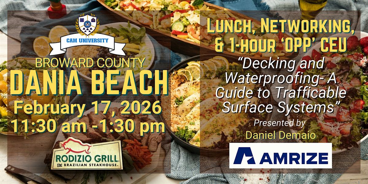 Join us for a fabulous lunch at Rodizio Grill and hear from Daniel Demaio of Amrize as he presents a 1-hour 'OPP' CEU on "Decking and Waterproofing- A Guide to Trafficable Surface Systems." Get your CEU, network with great business partners, and have a fantastic lunch! 11:30 am - 1:30 pm