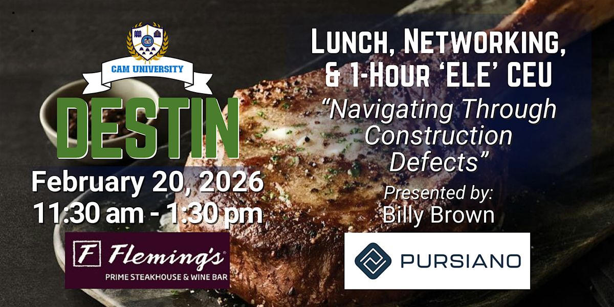 Join us for a fabulous lunch at Fleming's and hear from Billy Brown of Pursiano as he presents a 1-hour 'ELE' CEU: "Navigating Through Construction Defects." Get your CEU, network with great business partners, and have an amazing lunch! 11:30 am - 1:30 pm