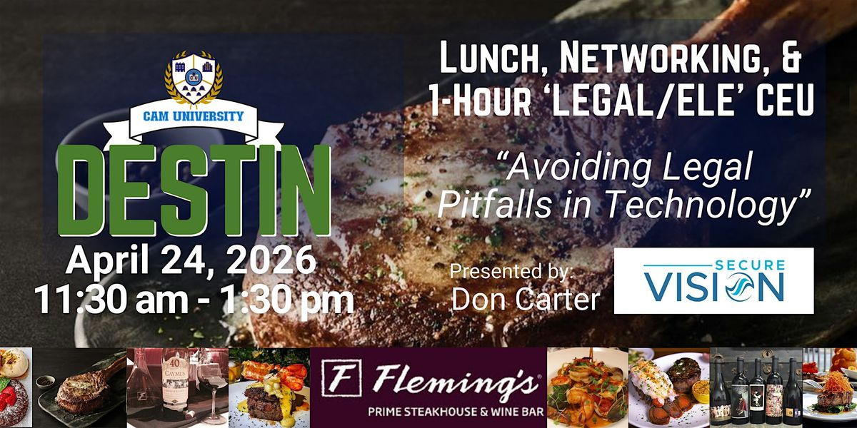 Join us at Fleming's on April 24 for a complimentary lunch, networking, and a 1-hour 'LEGAL/ELE' CEU by Don Carter of Secure Vision.About this Event