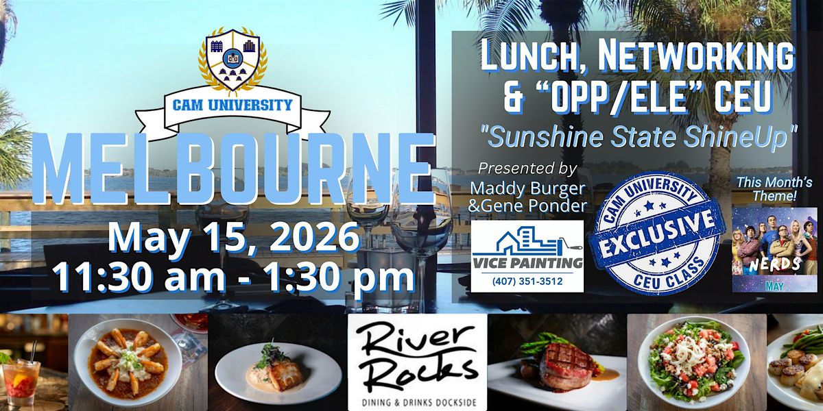 On May 15, 2026, 11:30–1:30 at River Rocks, attend “Sunshine State ShineUp” with Vice Painting and earn 1 OPP/ELE CEU.About this Event