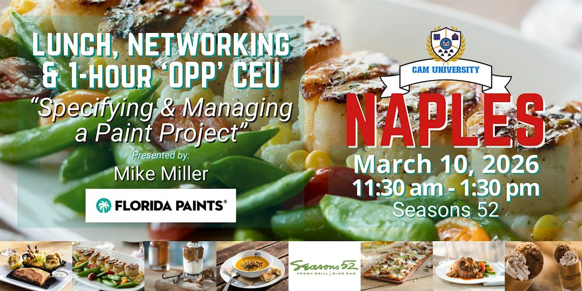 Join us for a complimentary lunch, networking, and a 1-hour 'OPP' CEU by Mike Miller of Florida Paints on "Specifying & Managing a Paint Project". Get informed, network with great business partners, and enjoy a fantastic lunch! 11:30 am - 1:30 pm