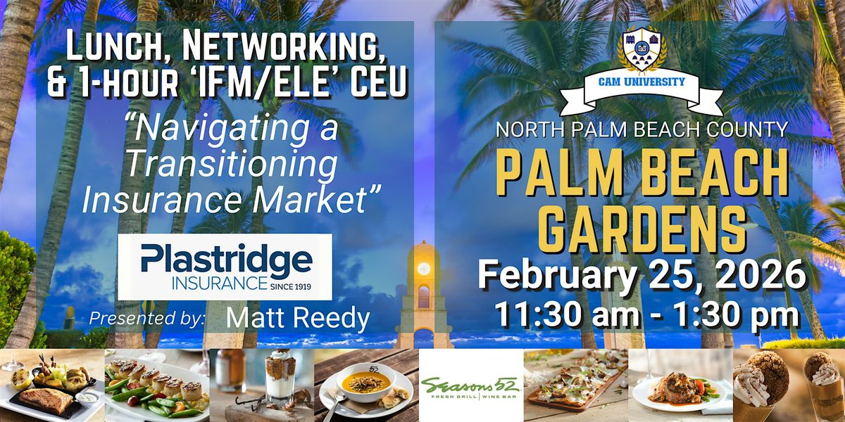 Join us at Seasons 52 on Feb. 25 for complimentary lunch, networking, and a 1- hour 'IFM/ELE' CEU by Matt Reedy of Plastridge Insurance.About this Event