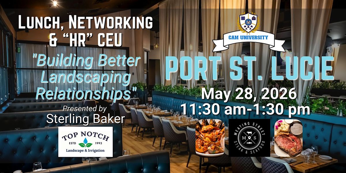 On May 28, 2026, 11:30–1:30 at Meating Street Steak & Seafood, learn landscaping strategies with Sterling Baker of Top Notch - earn 1 HR CEUAbout this Event