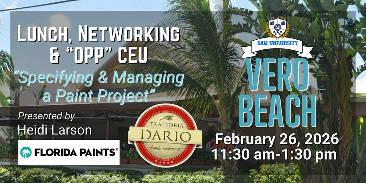 Join us at Trattoria Dario on Feb.26 for a complimentary lunch, networking, and a 1-hour "OPP" CEU by Heidi Larson of Florida Paints.About this Event
