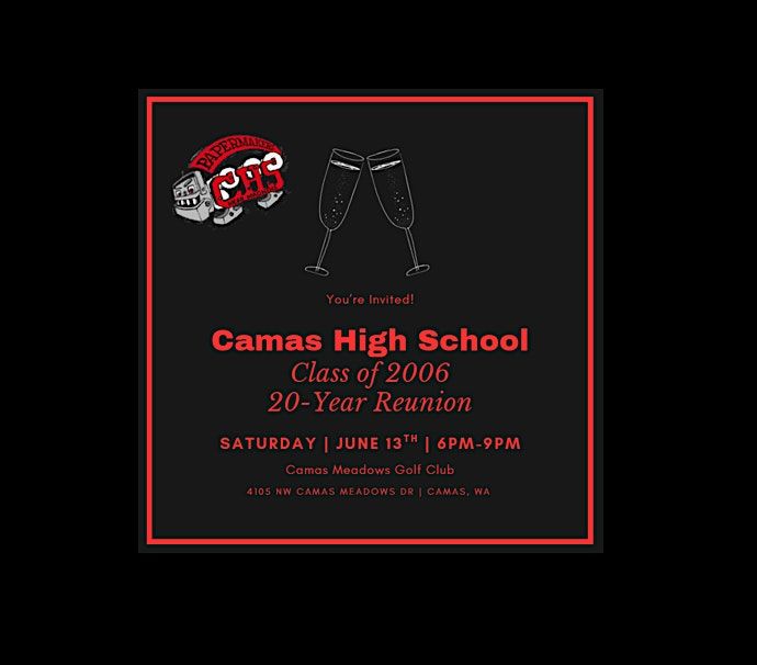 Hey Papermakers! It’s time to celebrate 20 years since graduation. Join us at Camas Meadows Golf Club on June 13, 2026 at 6:00 PM (Pacific Time) for an evening full of fun, laughs, and catching up with old friends. We can't wait to see you there!