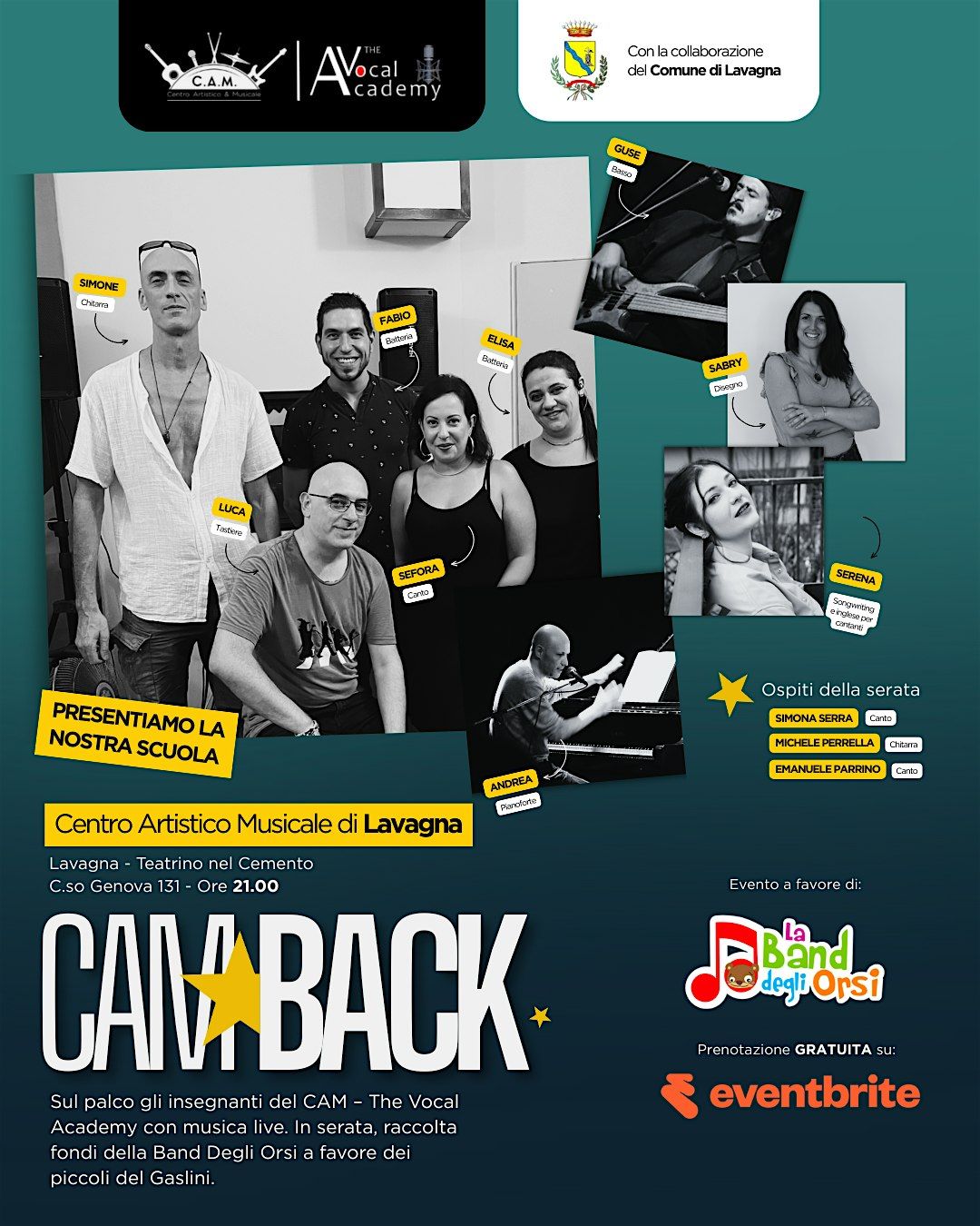 L’evento è a sostegno della Band degli Orsi, un’associazione che porta musica, sorrisi e conforto ai bambini ricoverati all’Ospedale Gaslini di Genova.