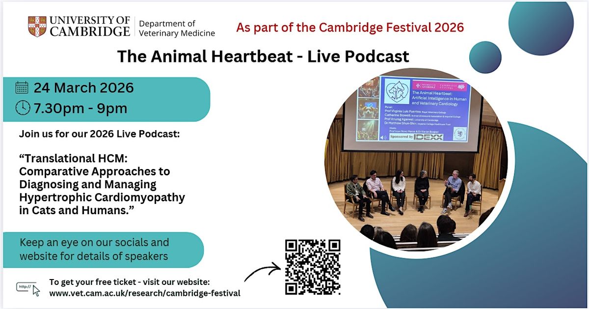 As part of Cambridge Festival 2026, The Animal Heartbeat podcast returns for another live event, exploring how human and veterinary medicine can learn from each other through the study of hypertrophic cardiomyopathy (HCM).