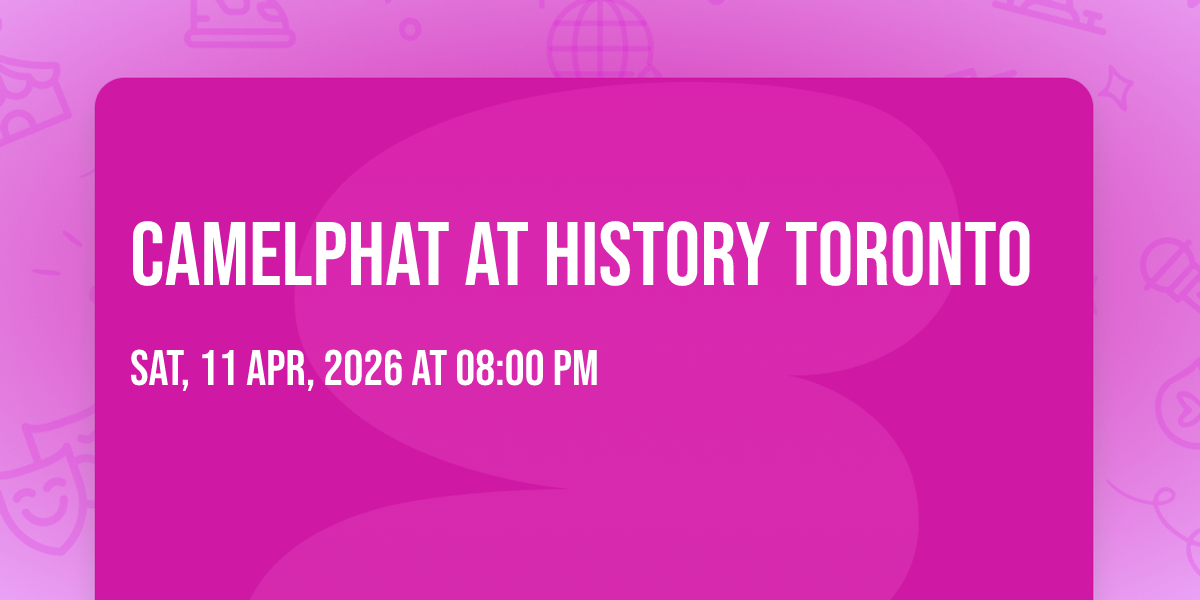 🌟 Be part of history at CamelPhat at History Toronto, an extraordinary gathering that will captivate your imagination! 🏛️ The prestigious History Toronto in Toronto, ON sets the stage for an unforgettable experience on April 11th, 2026 at 08:00 PM. ✨ They are bringing together the finest elements of entertainment and innovation to create moments that will take your breath away. From the moment you arrive, you'll be immersed in an atmosphere of wonder and excitement. 🎯 This carefully planned event ensures every guest experiences something truly special. 🎊 Early booking is recommended for this must-attend event of the season!