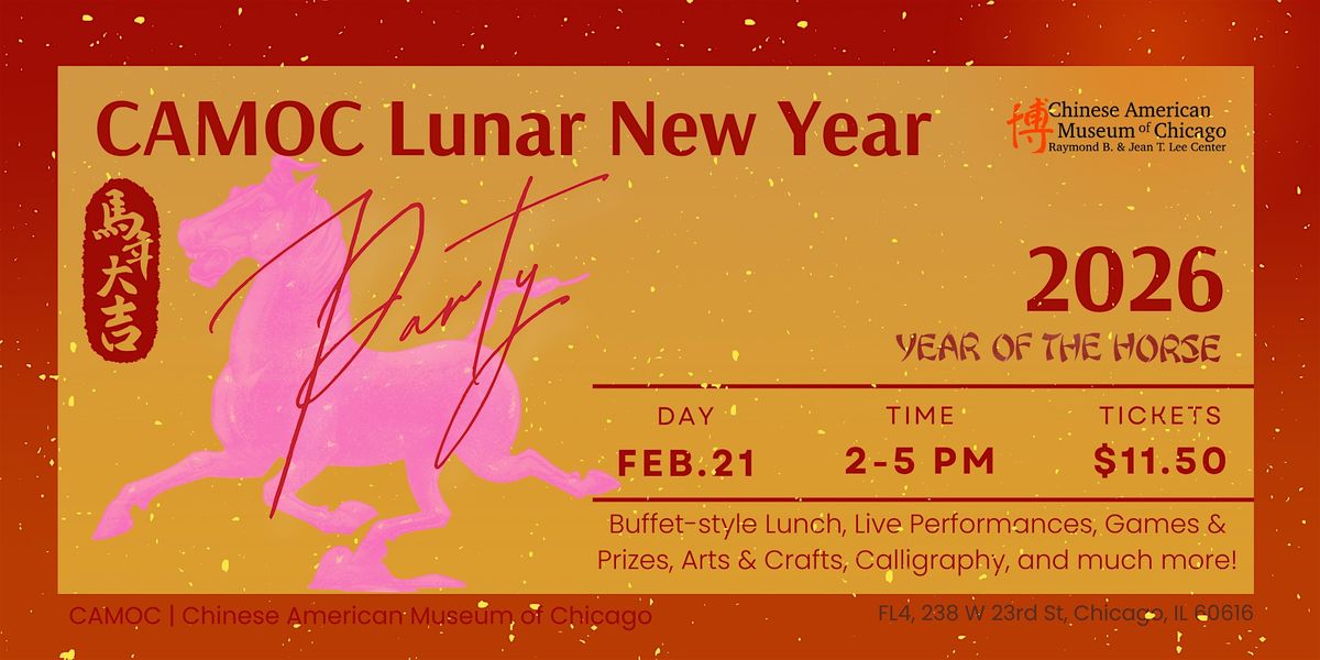Welcome in the Year of the Horse with CAMOC! Join us for our annual Lunar New Year Party on Saturday, February 21, 2026 at 2:00 PM. Festivities will include: