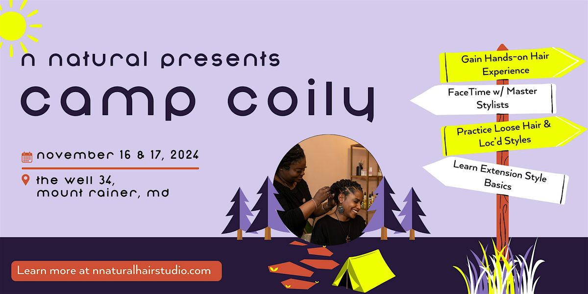 Picture this: your favorite summer camp vibes, but make it Black and bold! Now throw in natural hair empowerment, and you've got Camp Coily. This 18+ textured hair retreat is designed for natural hair enthusiats of all hair journeys. Whether you're just starting your natural hair journey or you’ve been rocking your crown for years, our Camp Coily counselors have your back (and edges).