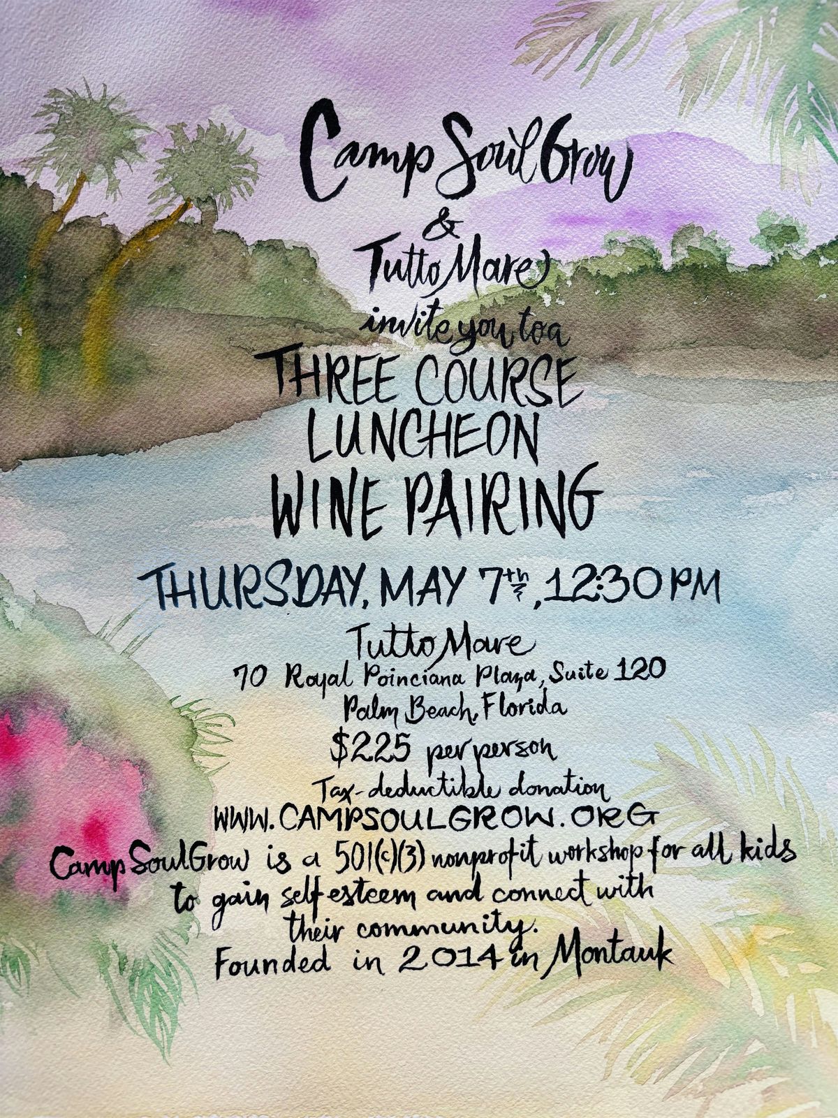 This special event supports Camp SoulGrow, a 501(c)(3) nonprofit dedicated to helping children build self-esteem and strengthen connections within their community through meaningful workshops and experiences.