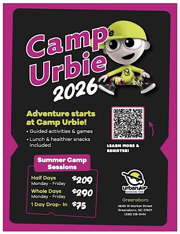 RSVPing on EventBrite does not secure a ticket. tickets must be purchased for attendance. Tickets may be purchased in person or online at www.urbanair.com/north-carolina-greensboro/camps/