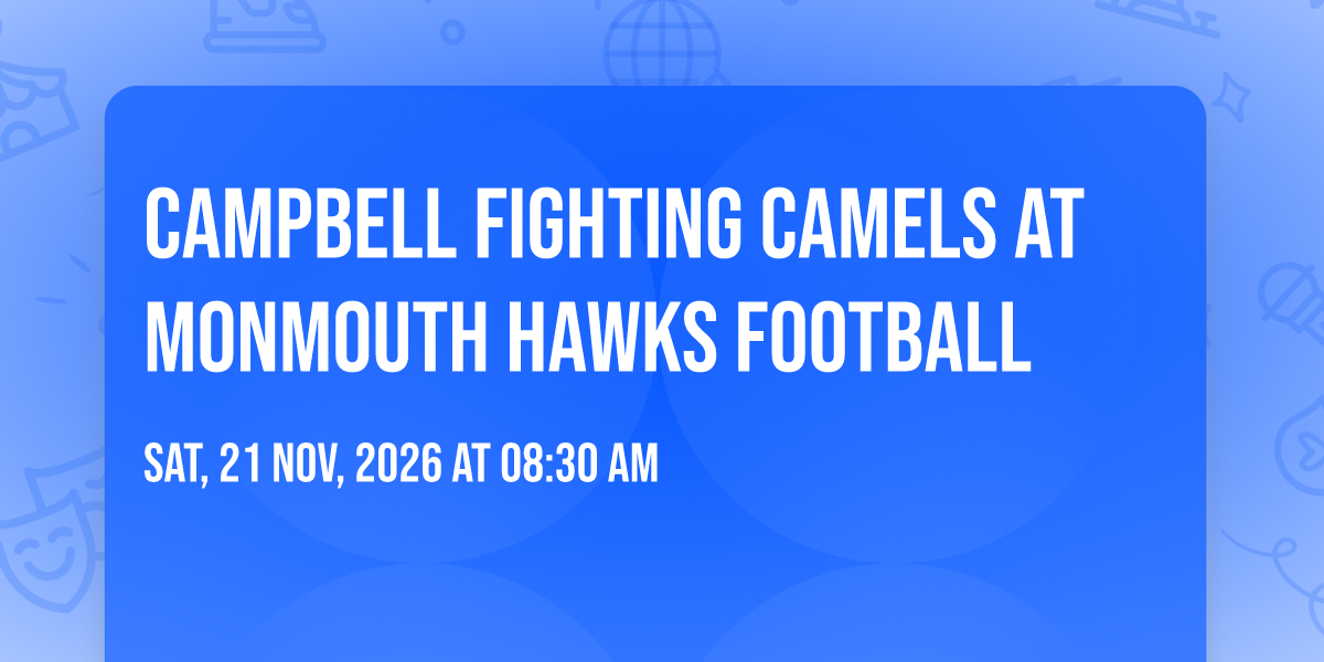 📍 Location: 40.2826, -74.0055🌟 Step into a world of wonder at Campbell Fighting Camels at Monmouth Hawks Football, where extraordinary moments await! 🏛️ Located at Kessler Stadium in dynamic West Long Branch, NJ, this event will become the talk of the town. 📅 Join us on November 21st, 2026 at 08:30 AM for a celebration that defies the ordinary. ✨ This curated experience brings together the best of entertainment, culture, and community spirit. Every detail has been thoughtfully planned to ensure an unforgettable experience for all our guests. 🎯 Take advantage of this opportunity to be part of something special. 🎊 Early registration is recommended as space is limited!