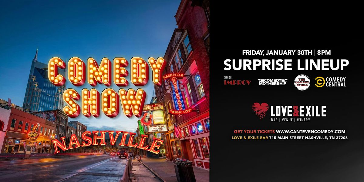 Can't Even Comedy x The Nudge are excited to bring you another incredible comedy experiece. We have teamed up with Love and Exile Bar in Nashville TN for a great night of drinks and Laughs. This will be an epic night of comedy with some of best comics from Austin, LA and NYC and maybe a few suprises!