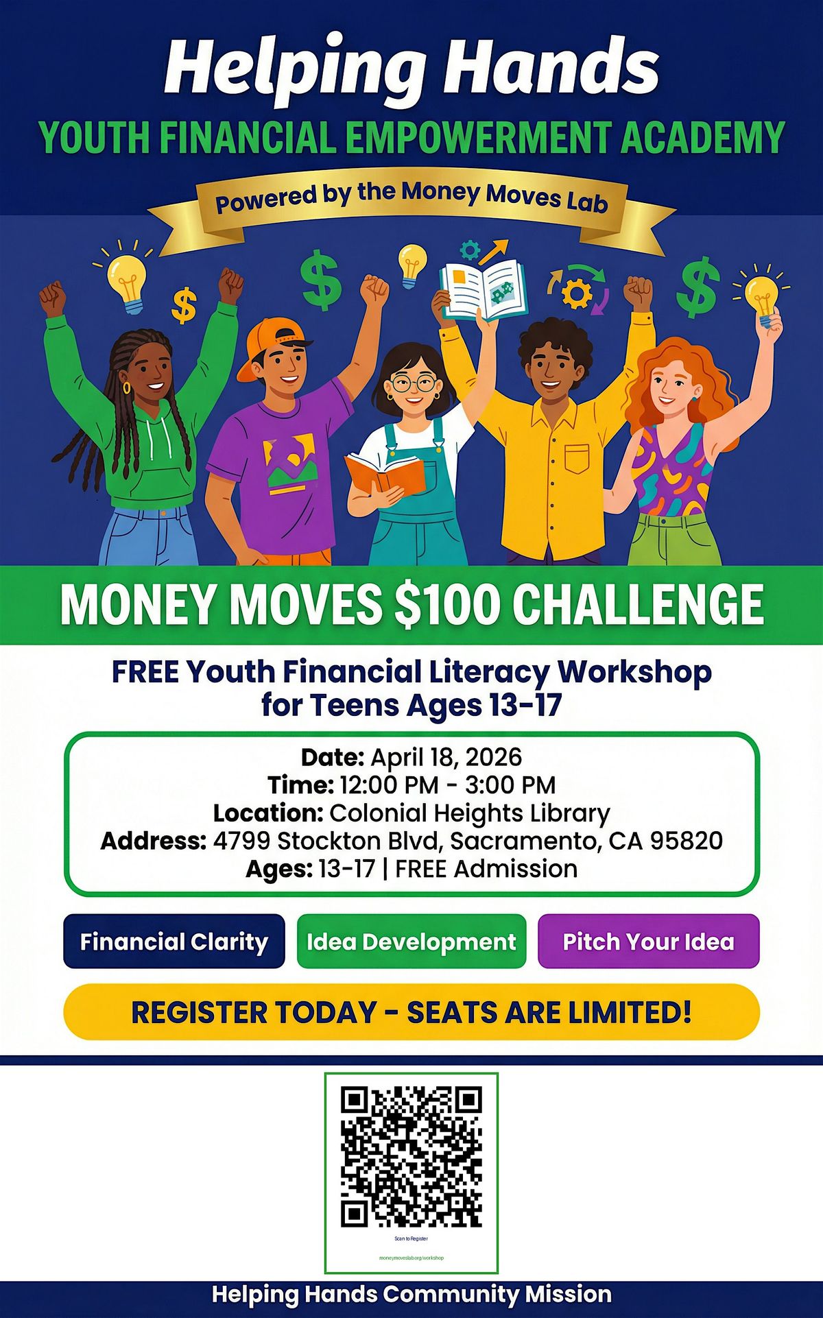 Hey teens! Ready to take on a fun challenge? Join us in person and see if you can start with nothing and hustle your way to $100 in just one week. It’s all about creativity, grit, and smart moves. Think you’ve got what it takes? Come show us your skills and learn some cool tips along the way!