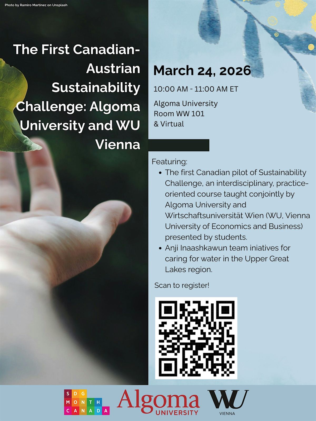 This event is a part of the SDG Month Canada in March 2026! We are excited to engage in this Canada-wide effort by showing how students want to integrate the SDGs into their Algoma University experience. Read about this nation-wide campaign at sdsncanada.ca/sdg-month