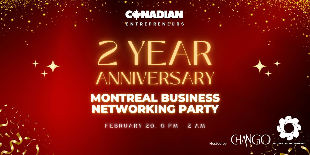 Join us on Thursday, February 26th, at Chango in Montreal for our 2 Year Anniversary of Canadian Entrepreneurs Business Networking Party, and this one’s going BIG.