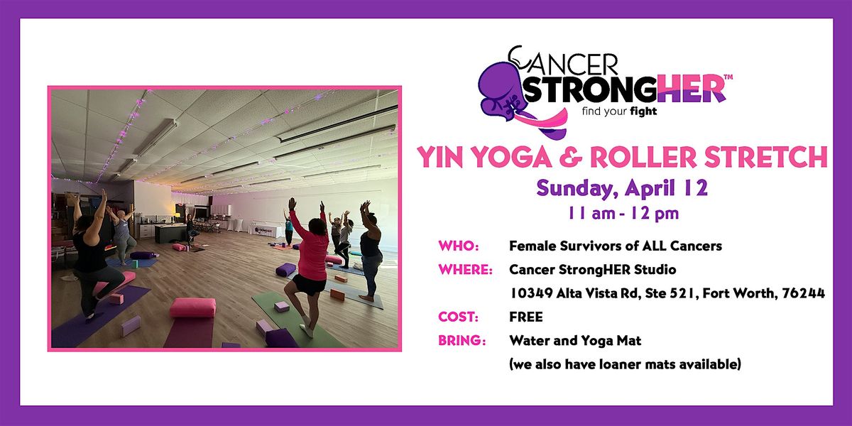 This free restorative yoga session for female survivors of all cancers is taught by Stephane Mamantov, an ACSM Cancer Exercise Trainer, Prana Yoga Therapy for Cancer Patient Instructor, and iRest Yoga Nidra teacher. Stephanie has been working with cancer patients and survivors in Fort Worth since 2010. Wear comfortable workout clothes, bring water, and bring a yoga mat if you have one. We will have loaner mats on hand as well.