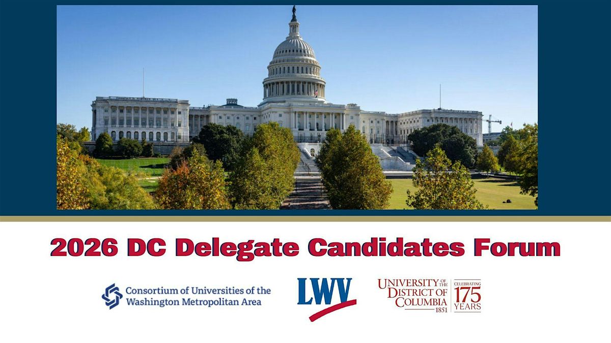 There is power in being informed! Please join the Consortium of Universities of the Washington Metropolitan Area, the University of the District of Columbia, and the League of Women Voters of DC for a nonpartisan Candidates Forum for the DC Delegate's Race on Thursday, May 4, 2026, from 6:30 pm to 8:30 pm, at UDC. Our event, will be moderated by renowned Washington DC-area journalist Kojo Nnamdi. Mr. Nnamdi is a veteran journalist and longtime public radio host who currently hosts the “The Politics Hour” on WAMU 88.5 and previously hosted “The Kojo Nnamdi Show”. This is wonderful opportunity to introduce voters to candidates in this year's race for the DC Delegate's seat in Congress. Attendees will hear from candidates on issues that are of great importance to our community including housing, education, workforce development, economy, healthcare, DC's autonomy, and more.