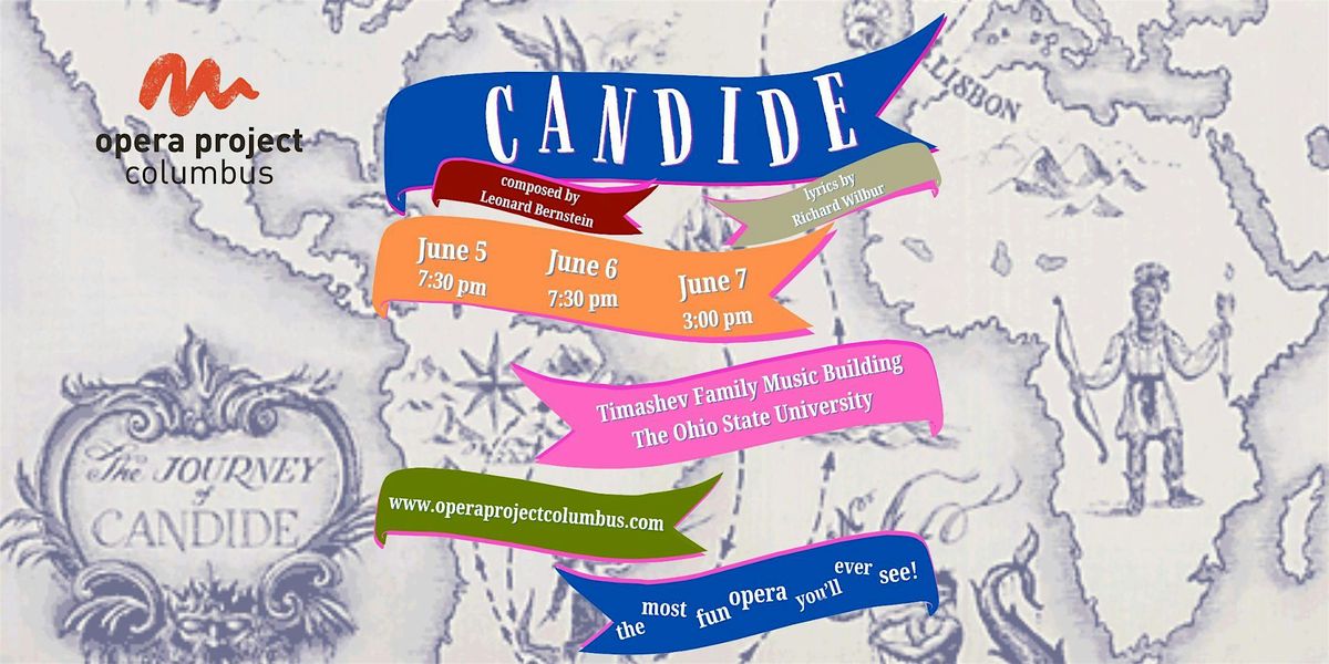 Opera Project Columbus presents Leonard Bernstein’s delightfully irreverent Candide, inspired by Voltaire’s 1759 novella—a whirlwind romp where boundless optimism meets spectacular misfortune. Young Candide, blissfully devoted to his beloved Cunegonde, is schooled by Dr. Pangloss to believe that all is for the best in this “best of all possible worlds.” Naturally, chaos ensues. In rapid succession, Candide is exiled, conscripted, swindled, shipwrecked, and repeatedly separated from his love, all while clinging (heroically, if naively) to Pangloss’s philosophy. Featuring a sparkling, genre-blending score and razor-sharp wit, this operetta gleefully skewers blind optimism while celebrating resilience, romance, and the absurd adventure of it all. Buckle up—it’s going to be a bumpy, brilliant ride.