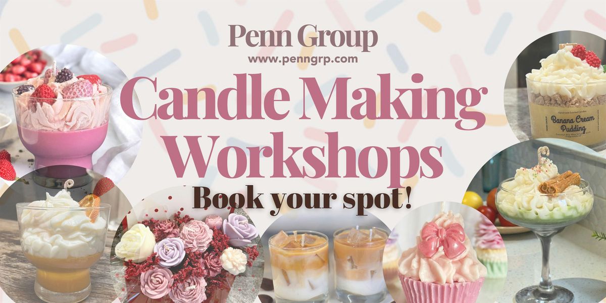 Join us at Penn Group's Candle Making workshop for a hands-on candle making experience where luxury scents meet feel-good intention. Guided by our expert experienced candlemaker and designer, you’ll blend and pour your own candle and learn the secrets behind crafting a scented candle that truly lingers.