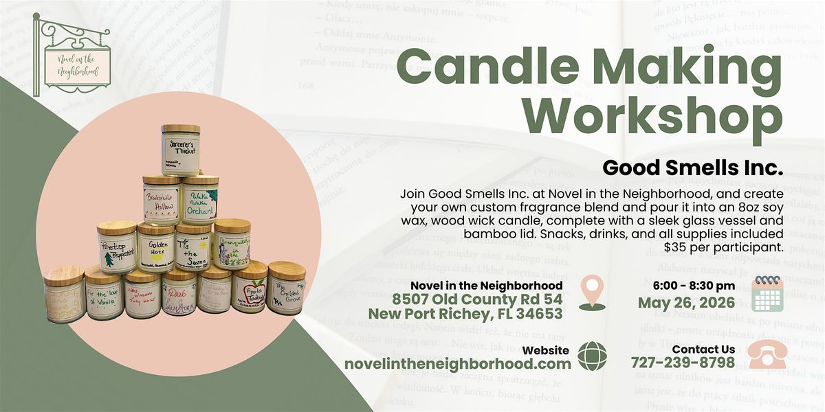 Join Good Smells Inc for a cozy, creative evening at Novel in the Neighborhood on May 26th from 6:00–8:30 PM