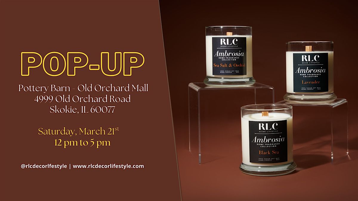 RLC Decor Lifestyle is popping up at Pottery Barn – Old Orchard Mall for a special in-store candle activation featuring our hand-poured vegan soy candles and calm-setting home fragrance favorites.