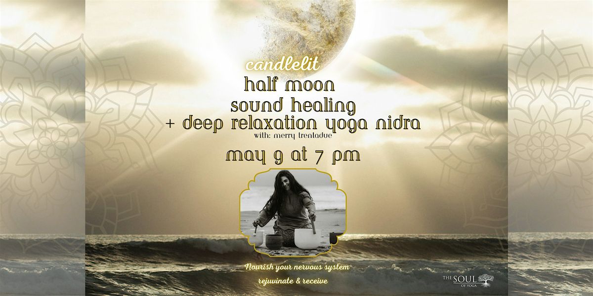 Join Merry under the Half Moon for a magical evening of deep rest and healing in a candlelit, starlit sanctuary. Immerse yourself in a profoundly restorative experience as Merry fills the space with healing light, guiding you to set your intentions (Sankalpa) followed by a deeply relaxing Yoga Nidra meditation. This guided practice will calm your mind, ease tension, and support your body's natural healing abilities.