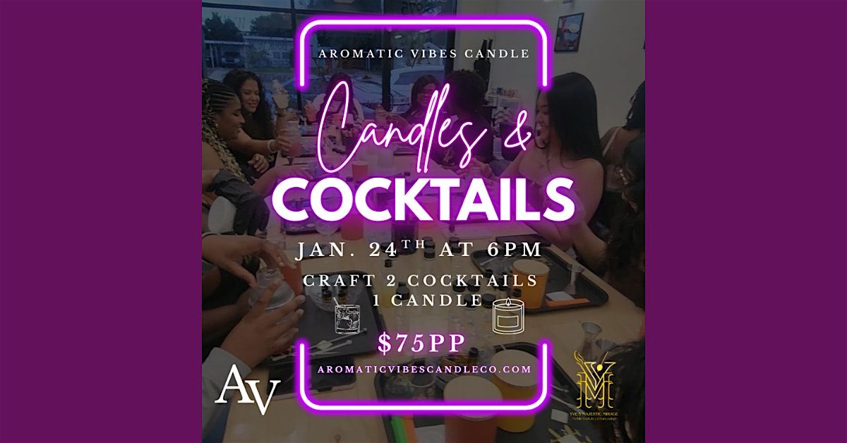 Join us for an unforgettable evening of creativity and indulgence at our highly anticipated "Candles and Cocktails" event, presented by Aromatic Vibes Candle! This unique guided class combines the art of candle making with the craft of cocktail mixing, ensuring a night filled with sensory delights.