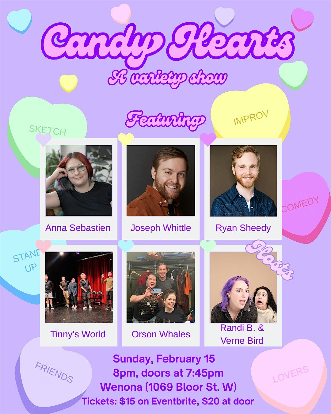 Randi B and Verne Bird present: Candy Hearts: A Variety Comedy Show featuring some of Toronto's best stand-up, sketch, and improv comedians!