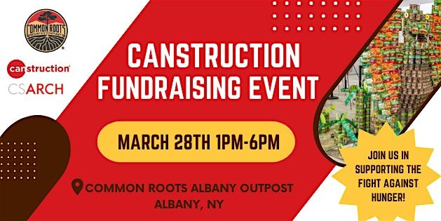 We are excited to announce a partnership with Common Roots Albany Outpost to raise money for CANstruction. Join us for a fun event open to the public on March 28th, order food and drinks, and enjoy some activities and the opportunity to win amazing raffle prizes donated by businesses across the Capital Region. CANstruction and the Food Pantries for the Capital District and help us make a difference in our community. 🎉🍻🎟️