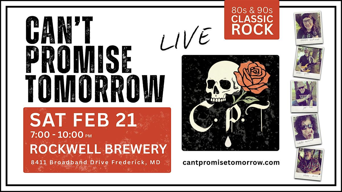 The band members are from the Frederick area and have been looking forward to one day playing Rockwell Brewery. So come on out to welcome them and enjoy some fine beer while enjoying Can’t Promise Tomorrow’s first time on the Rockwell stage.