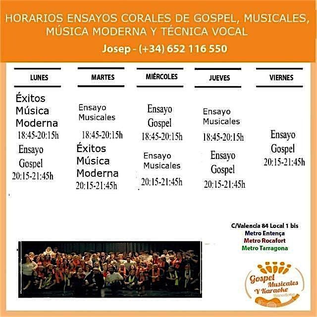 If you're up for it, write to me. You can also visit our website www.coralgospelbarcelona.com to get to know us better. And if you're too shy to call or introduce yourself, you can join our WhatsApp group here.