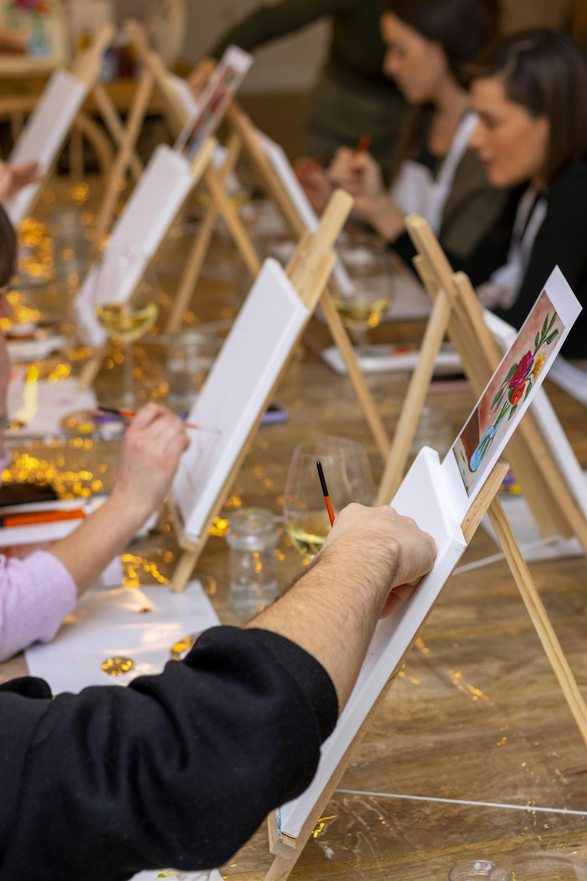 The class takes place in Artventures studio, fostering a comfortable and conducive ambiance for creativity to flow freely. The room is adorned with colorful artwork and filled with the scent of fresh paint, stimulating the artistic senses of the participants. Easels, canvases, brushes, and paints will be ready to be put to use by the eager students when you arrive.