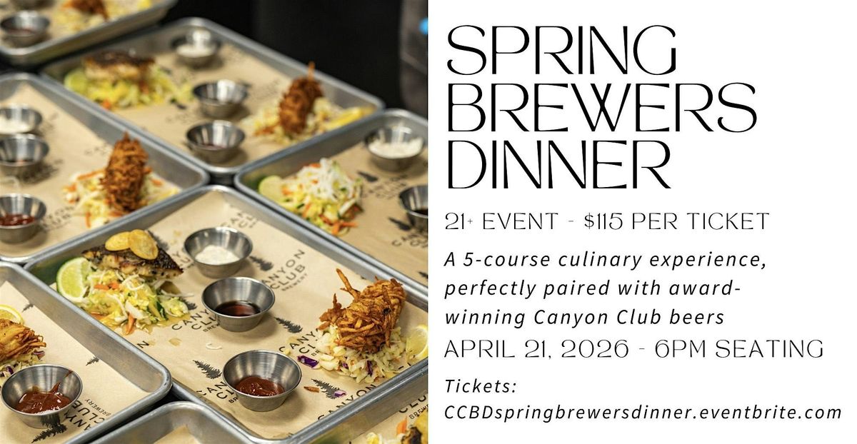 Get ready for a fun evening at the Canyon Club Brewery Spring Brewer's Dinner! Join our Master Brewer and Executive Chef for some amazing brews paired with delicious dishes crafted for the spring season. It's the perfect chance to hang out, savor some great flavors, and meet fellow beer lovers. Don’t miss this laid-back event packed with good vibes, great company and delicious food and beer!